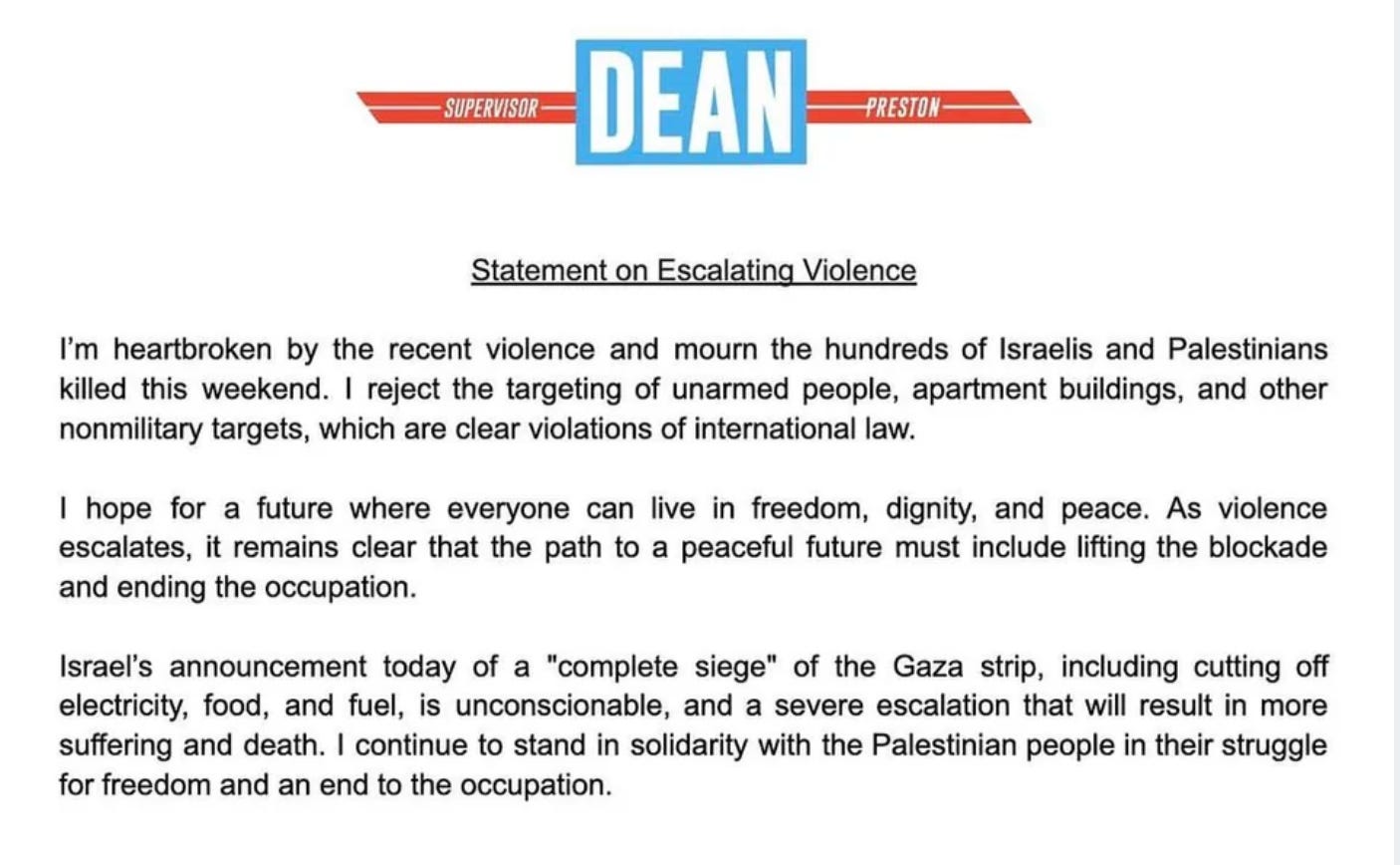 Instead people like Richie Greenberg, a San Francisco political commentator and journalist for the California Globe has covered the issue. His latest piece, Denouncing San Francisco Supervisor Dean Preston: The Jewish Democratic Socialist faces the music, pulled no punches.