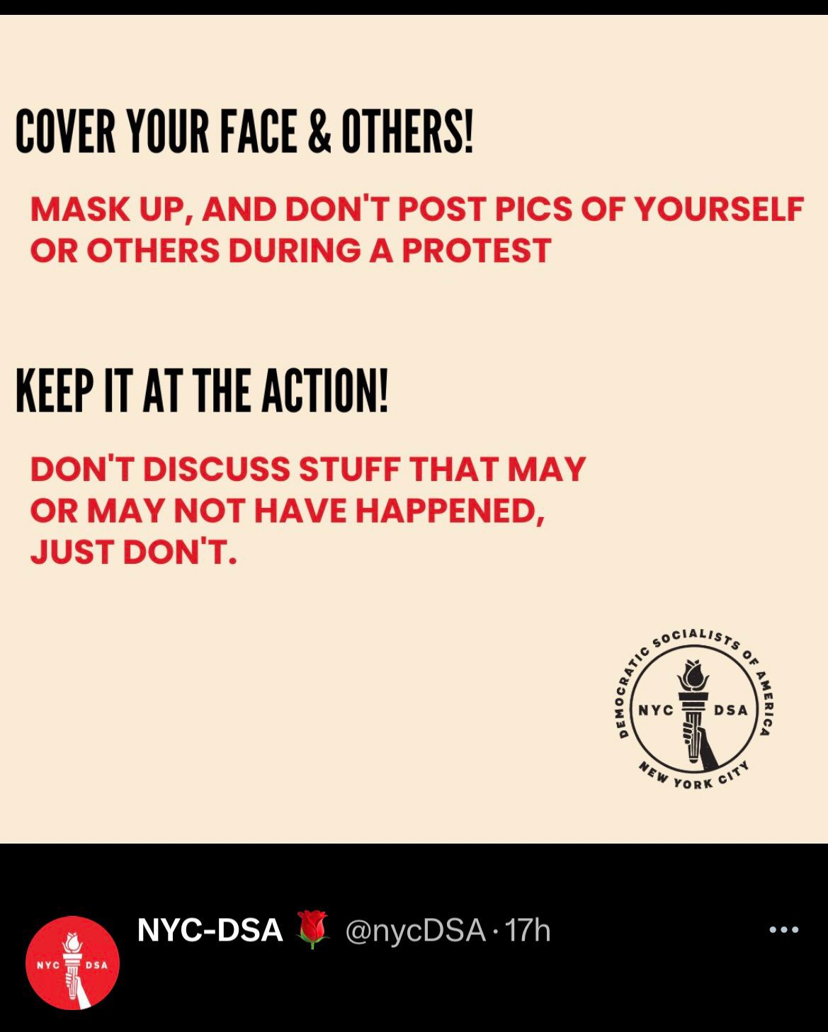 Perhaps not. Here is the call-to-action by the DSA-NYC.